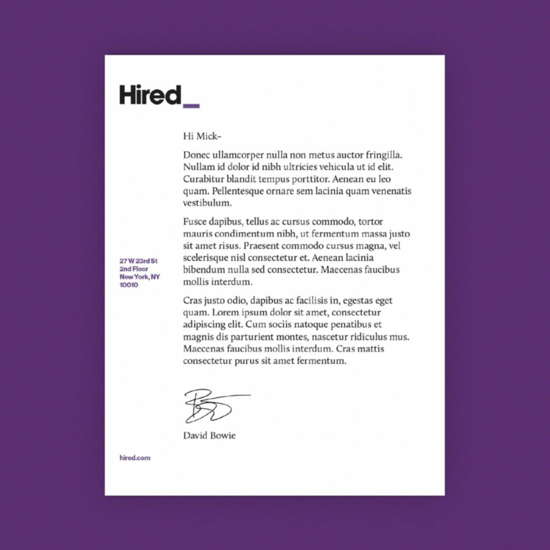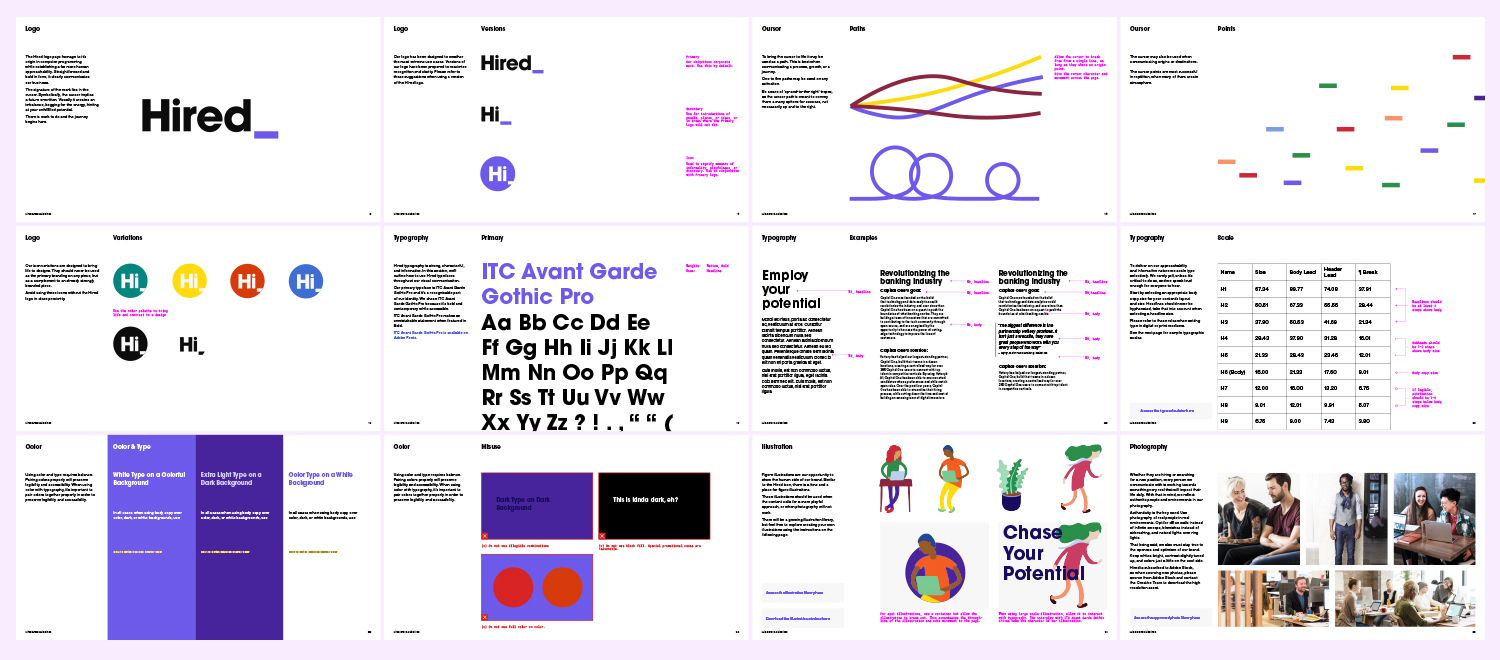 In November of 2020, Vettery acquired Hired and merged the two companies, adopting the Hired name. Partnered with Schuyler MacFayden, I set about to rebrand the new united company under one banner. We conducted workshops and interviews across the new company to create an updated brand strategy, identity, and tone of voice.